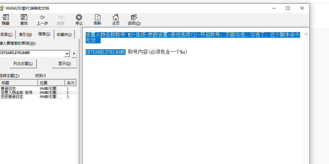 设置人物名称称号 M2-选项-参数设置-游戏选项(1)-开启称号。不能勾选,勾选了,这个脚本命令无效